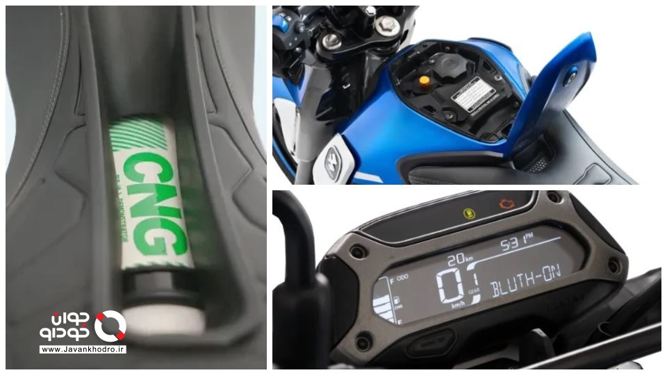 همانطور که در تصاویر مشاهده میکنید، باجاج فریدم علاوه بر باک بنزین، به مخزن گاز مایع فشرده یا همان CNG هم مجهز است. مخزن 2 کیلوگرمی CNG در زیر صندلی قرار گرفته است، درحالیکه مخزن بنزین، فقط 2 لیتر حجم دارد.