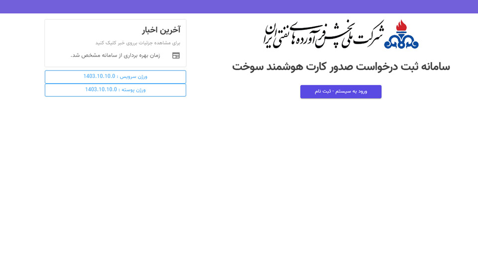 سامانه ثبت درخواست آنلاین کارت هوشمند سوخت ، در اردیبهشتماه 1403 و در جریان بیستوهشتمین نمایشگاه بینالمللی نفت ایران رونمایی شده است. با توجه به این که استفاده از کارت سوخت شخصی به یک الزام تبدیل شده، شهروندان باید در سریعترین و راحتترین روش ممکن کارت سوخت خود را دریافت کنند. بنابراین این سامانه باهدف توسعه دولت الکترونیک و تسهیل در ارائه خدمات به شهروندان و همچنین کاهش زمان تحویل کارت هوشمند سوخت رونمایی شد.