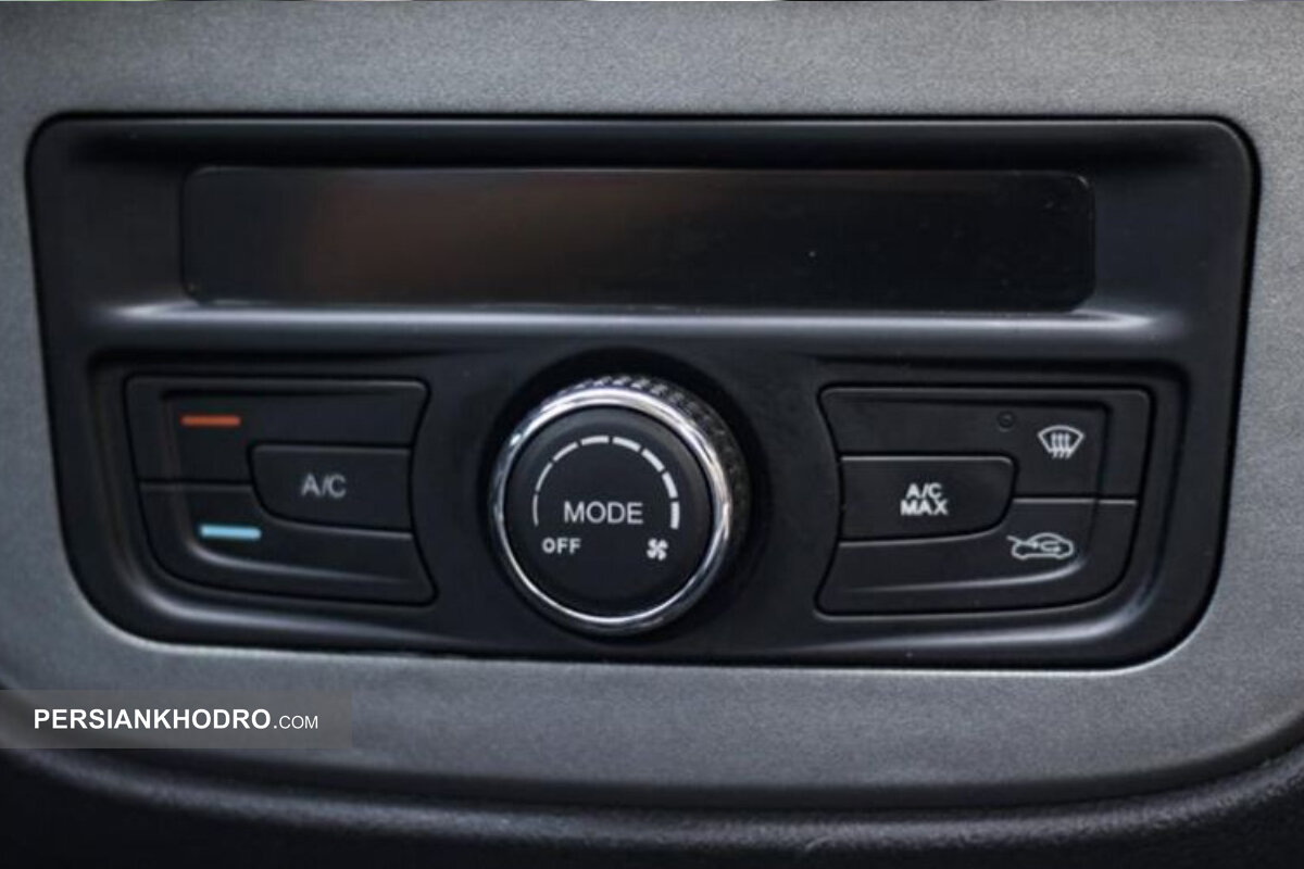 درست در مرکز اهرم پیچی، دکمه‌ای با عنوان MODE قرار دارد. با فشردن این دکمه، جهت پرتاب باد تغییر می‌کند. بسته به تعداد دفعات فشردن، باد می‌تواند به سمت صورت، پاها، ترکیبی از هر دو، یا شیشه جلو هدایت شود. این امکان کمک می‌کند تا در تنظیم کولر خودرو ساینا، جریان هوا را متناسب با نیاز خود مدیریت کنید. عملکرد MODE به‌ویژه در شرایطی که نیاز به تهویه پا یا ضد بخار کردن شیشه‌ها دارید، بسیار مؤثر خواهد بود.