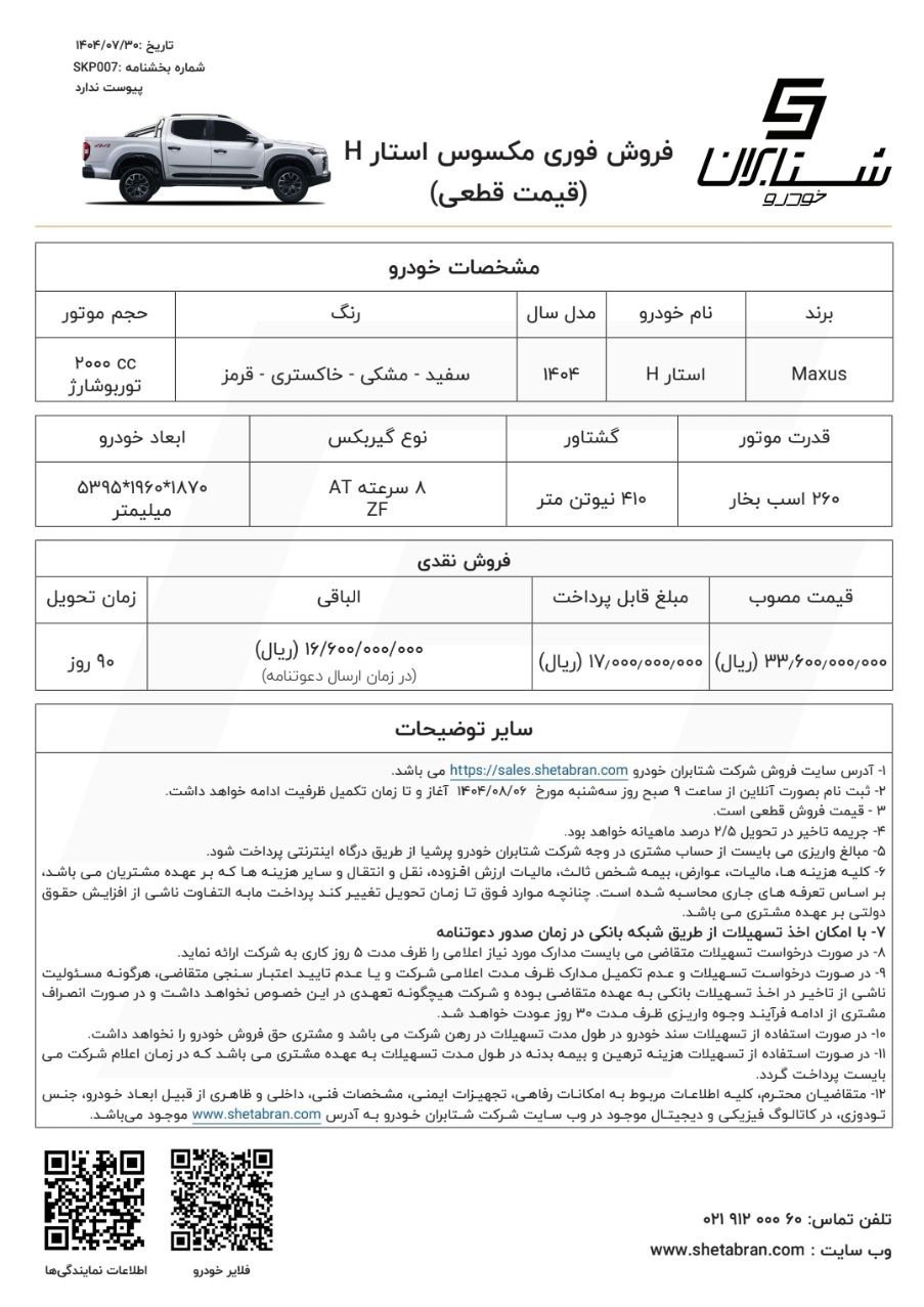 علاقمندان برای کسب اطلاعات بیشتر می توانند به sales.shetabran.com مراجعه کنند.