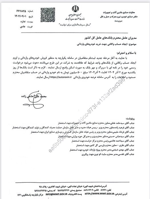 به گزارش پایگاه خبری «عصرخودرو» به نقل از ایرنا، محمدعلی حاجیزاده یکم آذر در نامه ای به مدیرعاملان بانک ها اعلام کرد: بانک زمینه بلوکه کردن مبلغ 500 میلیون تومانی را برای متقاضیان فراهم کنند.