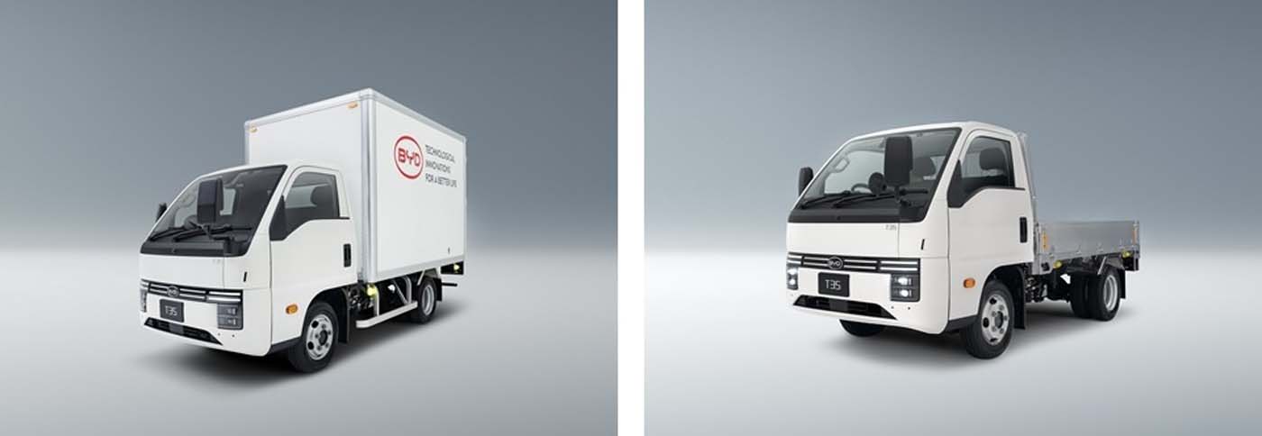 کامیون T35 در دو پیکربندی «ون آلومینیومی» (Aluminium Van) و «کفی» (Flatbed) در دسترس خواهد بود. این خودرو از فناوری پیشرفته باتری تیغهای (Blade Battery) BYD با شیمی LFP (لیتیوم آهن فسفات) بهره میبرد. علاوه بر این، T35 بر پایه طراحی نوآورانه «سلول-به-شاسی» (CTC) ساخته شده است؛ در این معماری، مجموعه باتری مستقیماً با شاسی خودرو یکپارچه میشود که به افزایش پایداری و ایمنی خودرو کمک شایانی میکند.